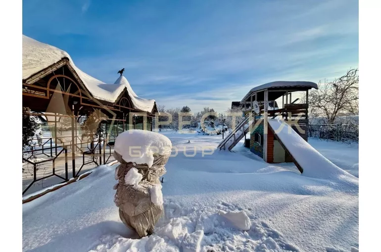 Дом полностью готов для круглогодичного проживания: магистральный газ, продуманная планировка, баня с бассейном, благоустроенная территория и подземный гараж на 2 автомобиля.