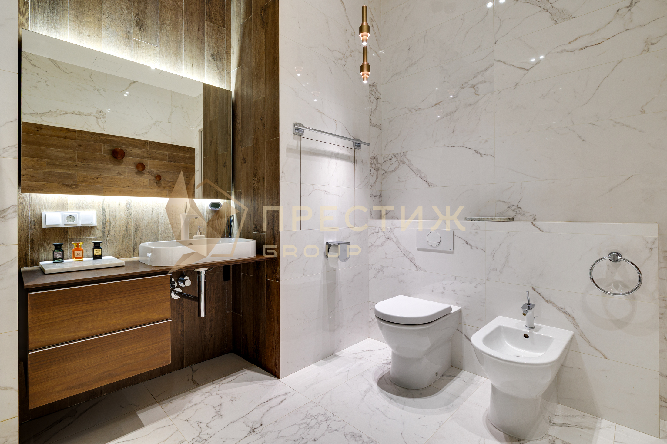Техника от лучших производителей, изысканные итальянские светильники Flos, смесители Axor, сантехника Duravit,