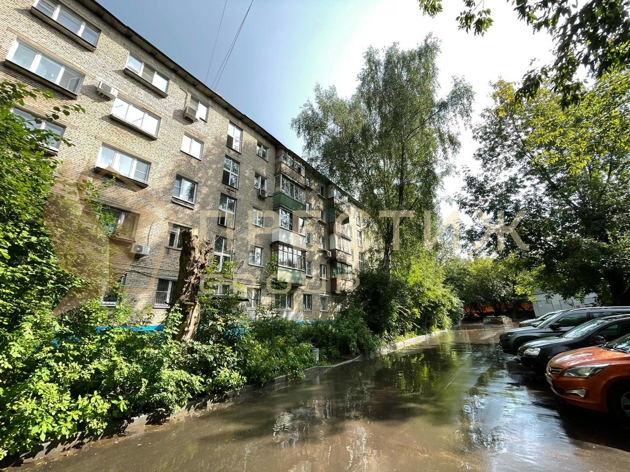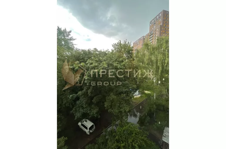 Двор тихий, зеленый. Окна выходят на солнечную сторону.